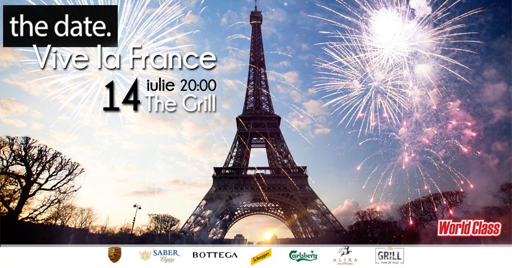 The date. – Vive la France! – Pe 14 iulie spunem impreuna “Je ne regrette rien” si facem un garden party sic in gradina comuna The GRILL & W by World Class. Gandeste-te la tot ce iti aduce aminte de Franta si vei gasi acolo – macarons, bufet cu arome frantuzesti, lavanda si multa distractie buna. Cei mai faimoși DJ-i cu care te-ai obișnuit de 2 ani la Thedate vor pune muzica aleasa cu grija ca sa te tina pe ringul de dans pana dimineata.